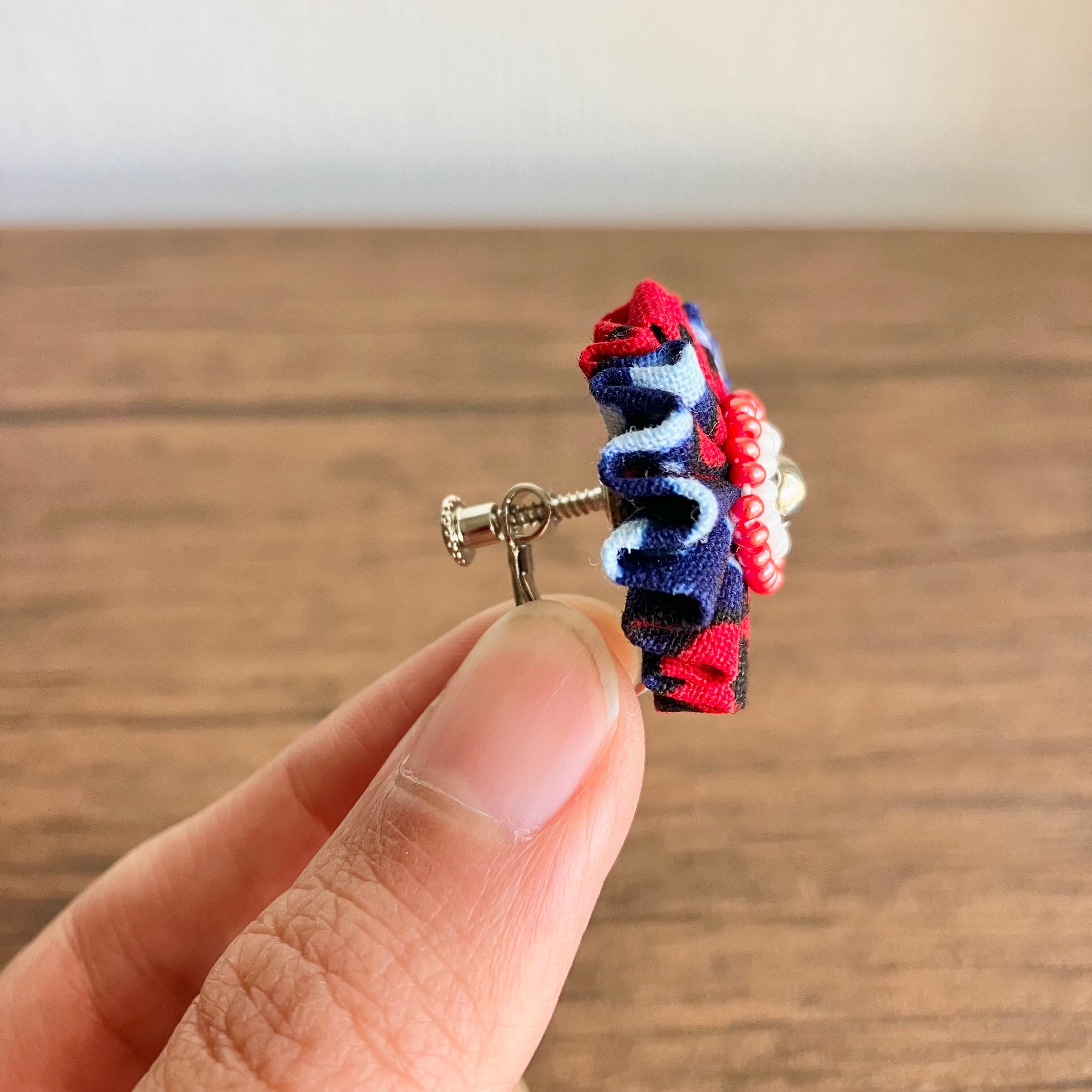 カラフルで、ビビッドだけれど、耳元にパッと華やかに咲くアクセサリーなので