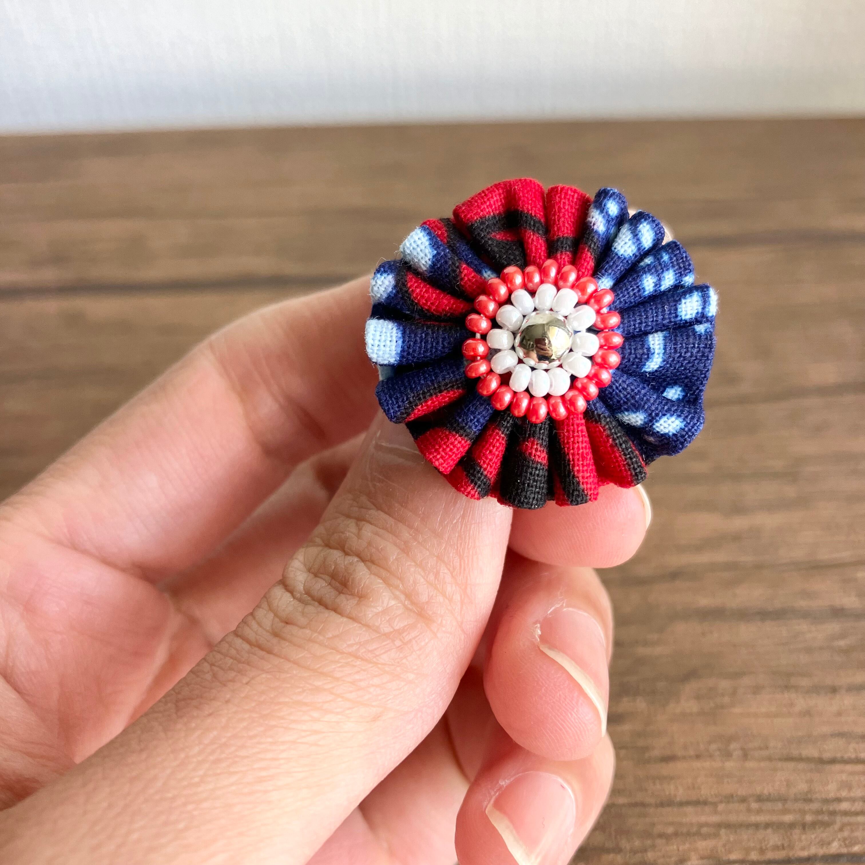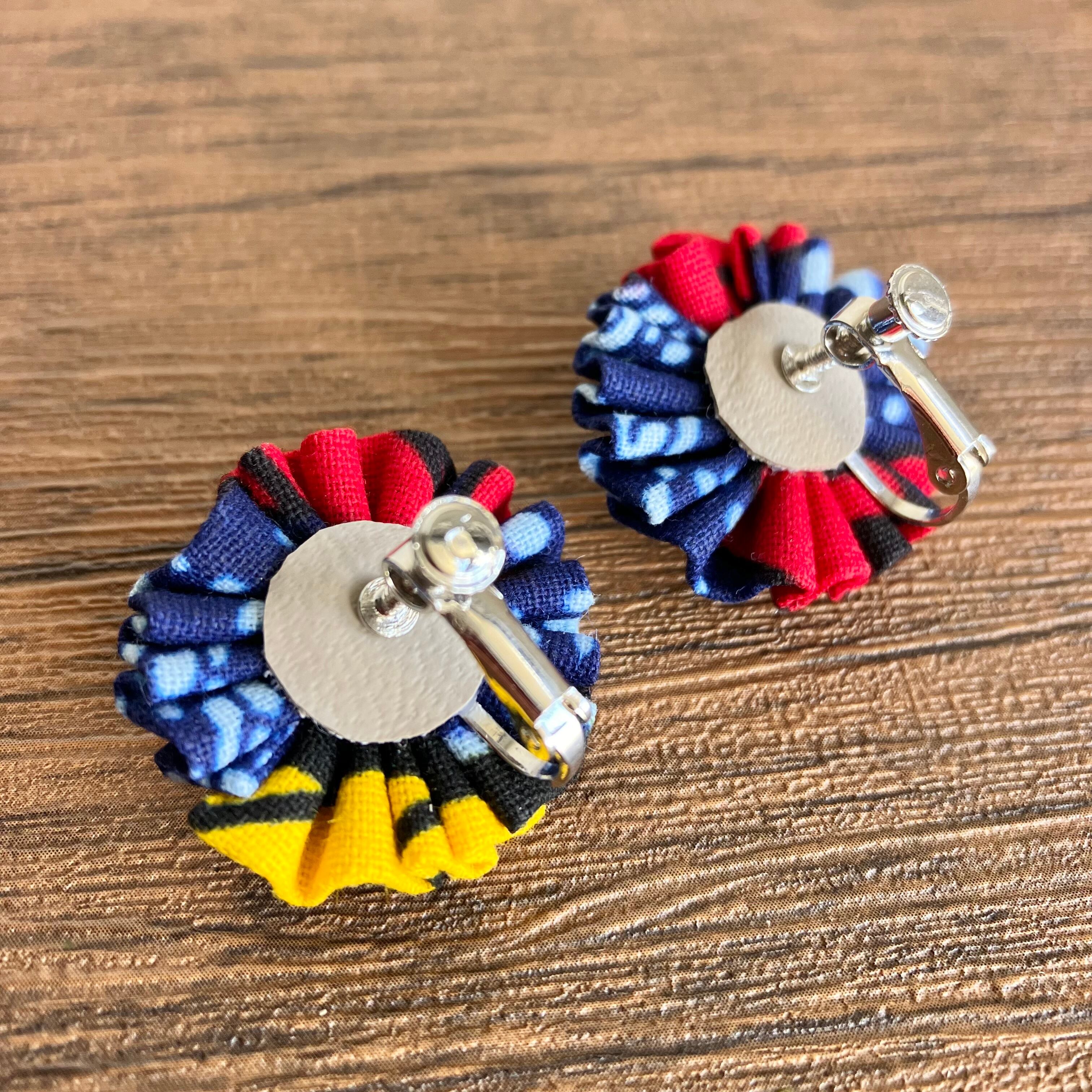 色鮮やかなアフリカ布を、くしゅくしゅっとしたお花に仕立てることで