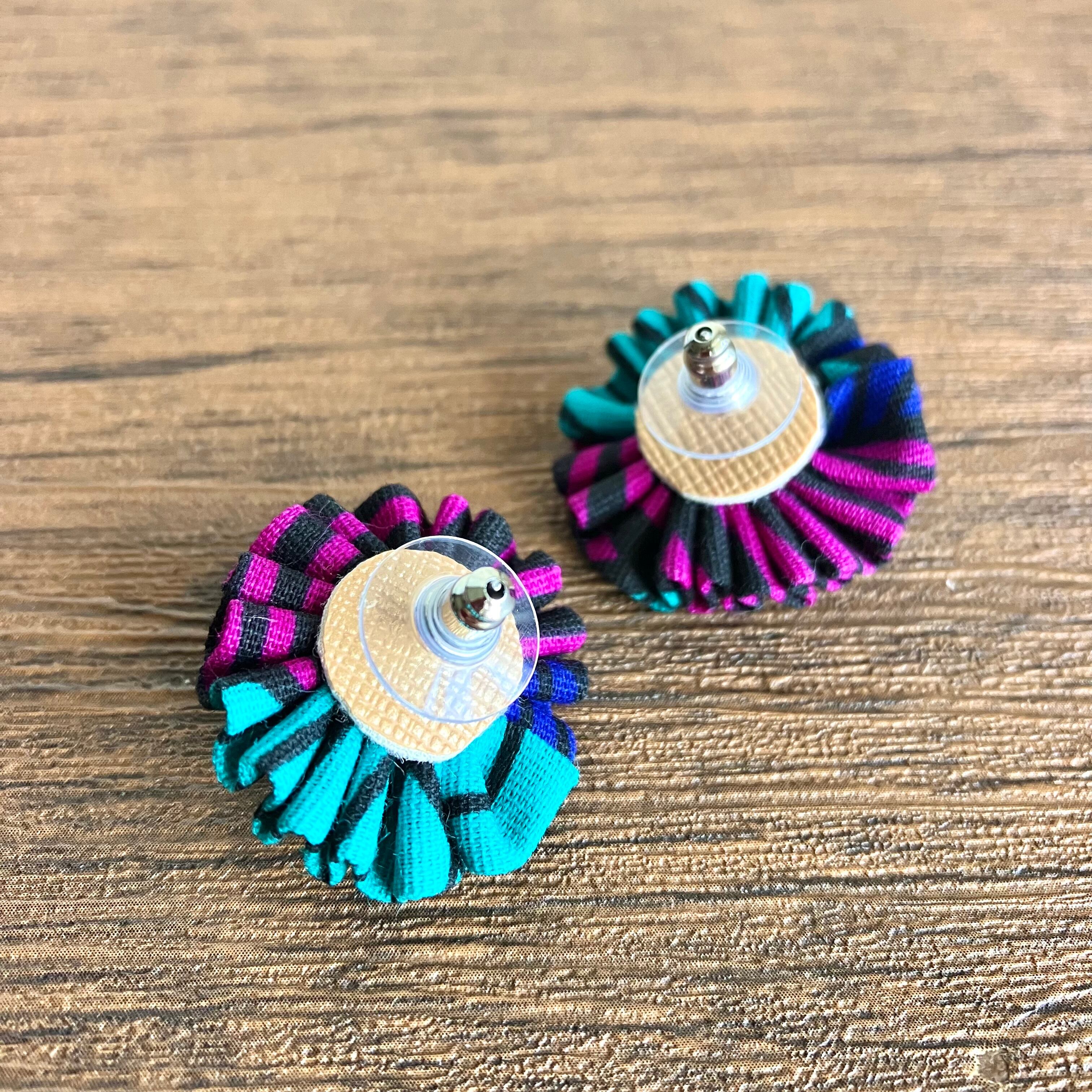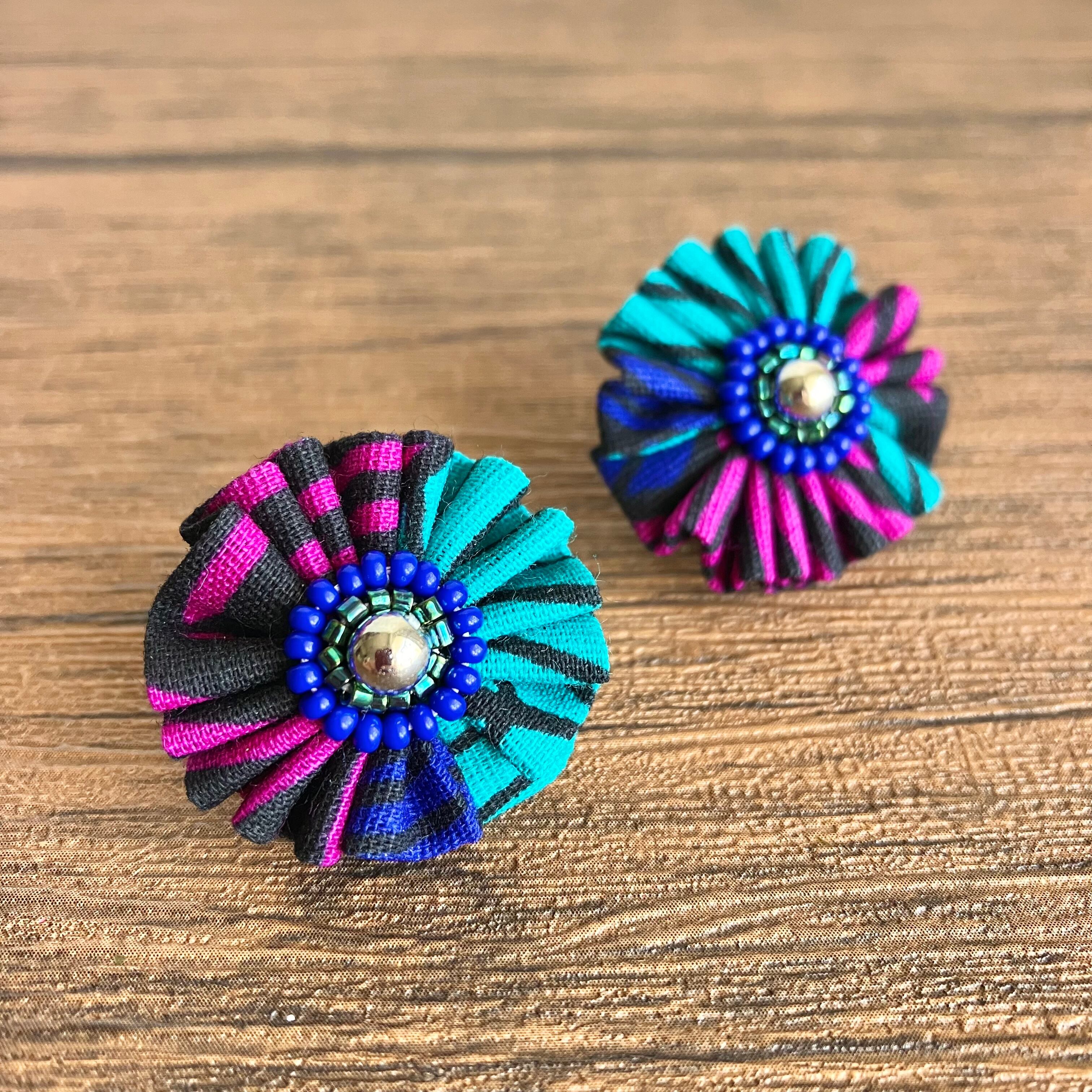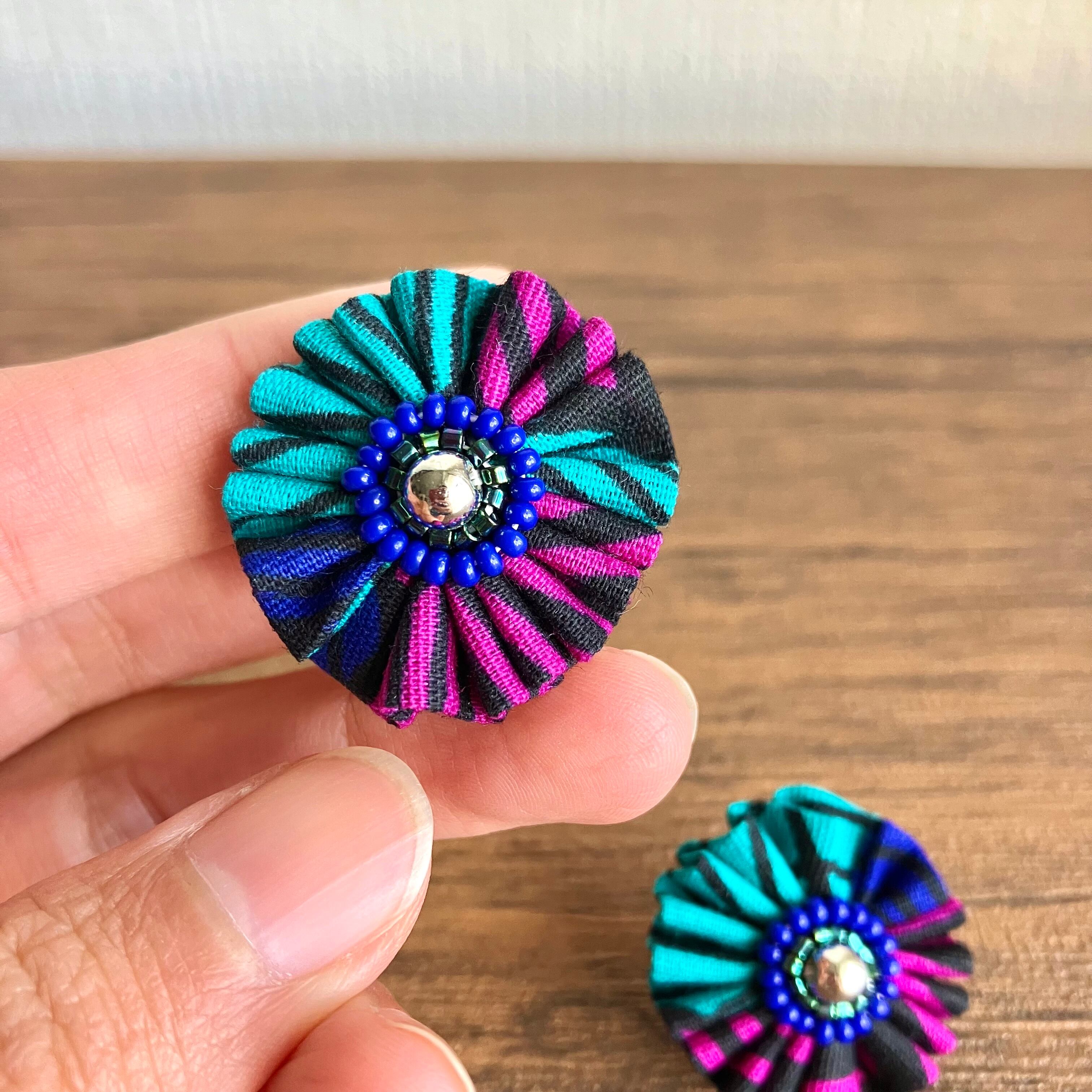 色鮮やかなアフリカ布を、くしゅくしゅっとしたお花に仕立てることで