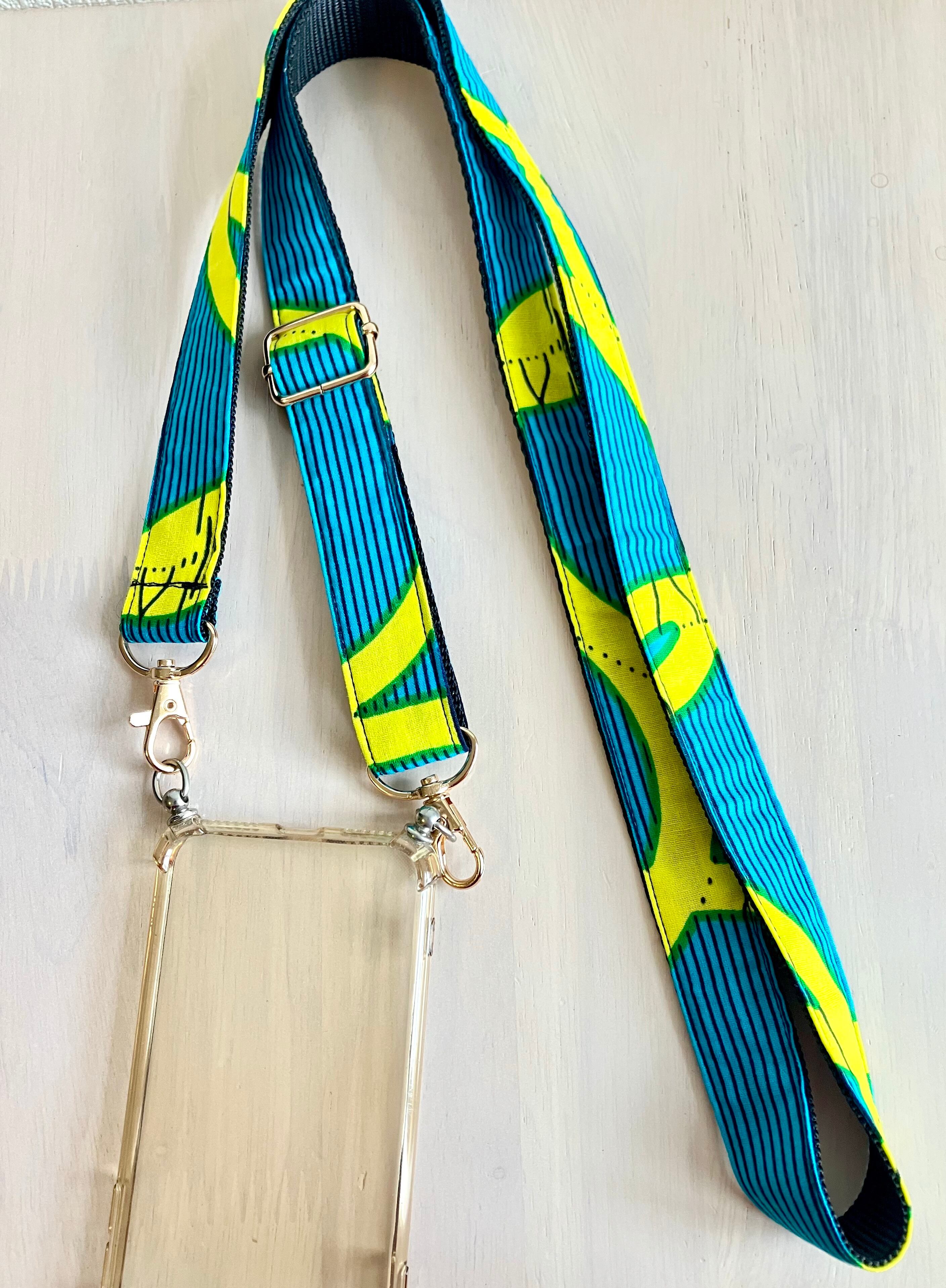 色鮮やかなアフリカ布を使った、当店オリジナルのスマホショルダーストラップです。
