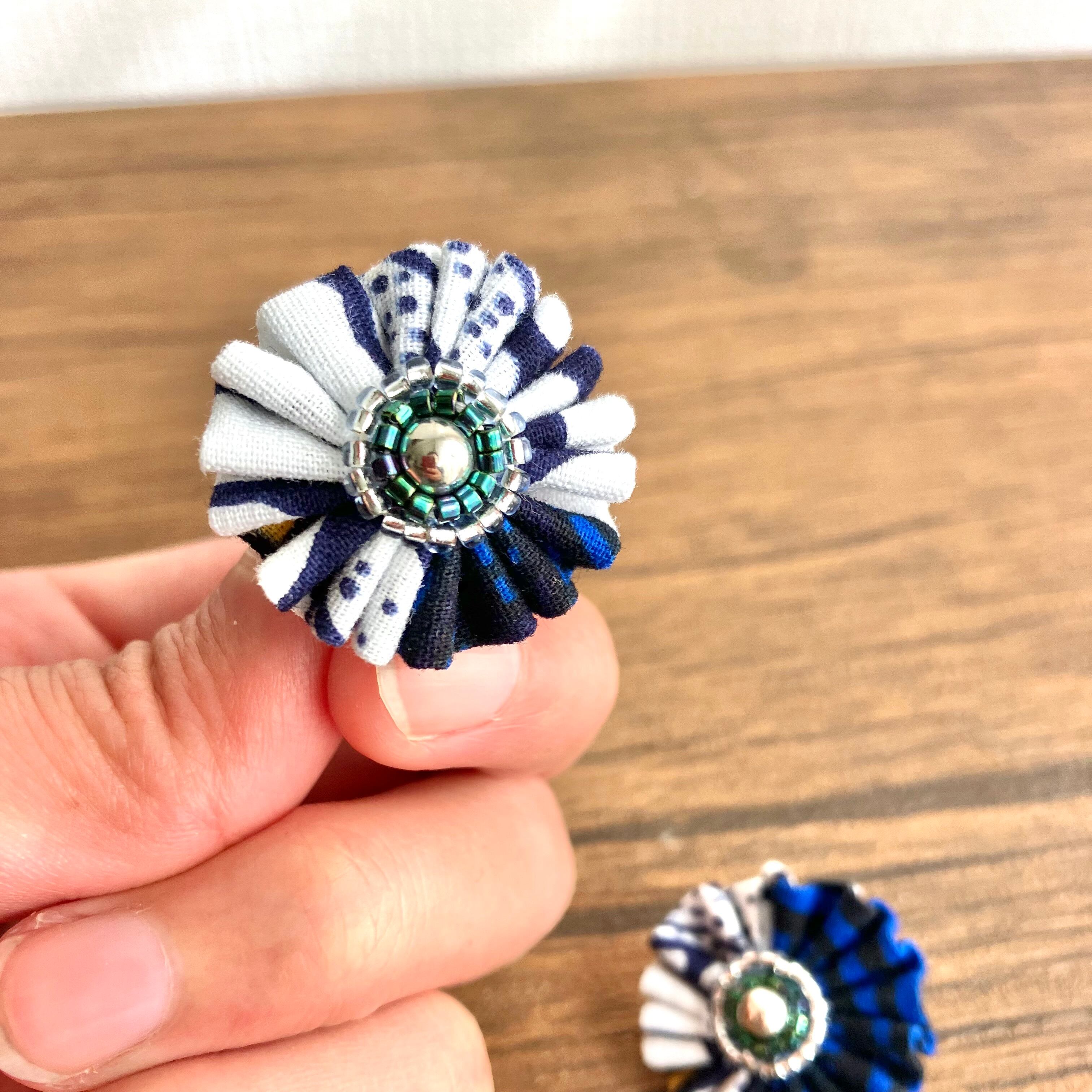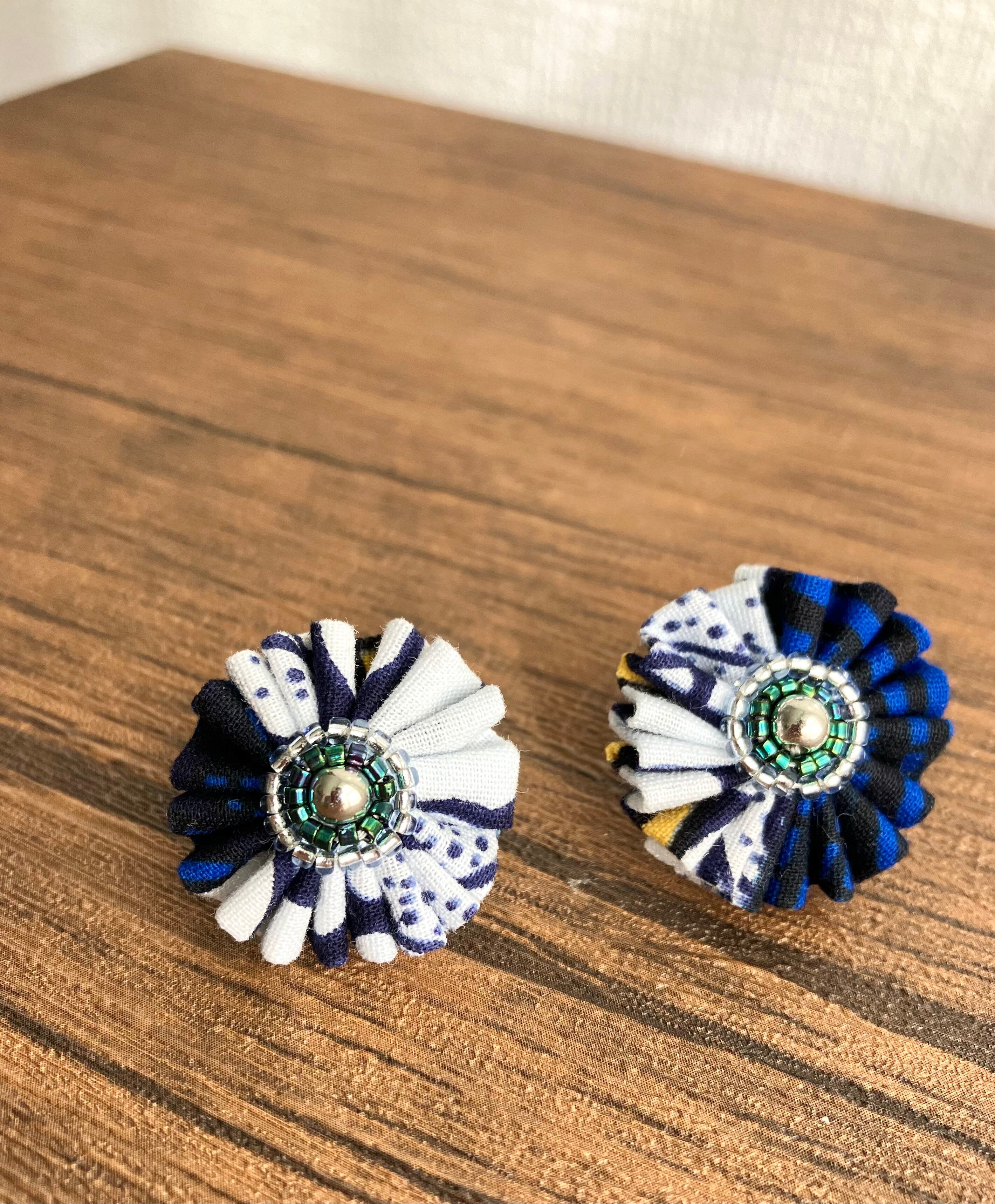 色鮮やかなアフリカ布を、くしゅくしゅっとしたお花に仕立てることで