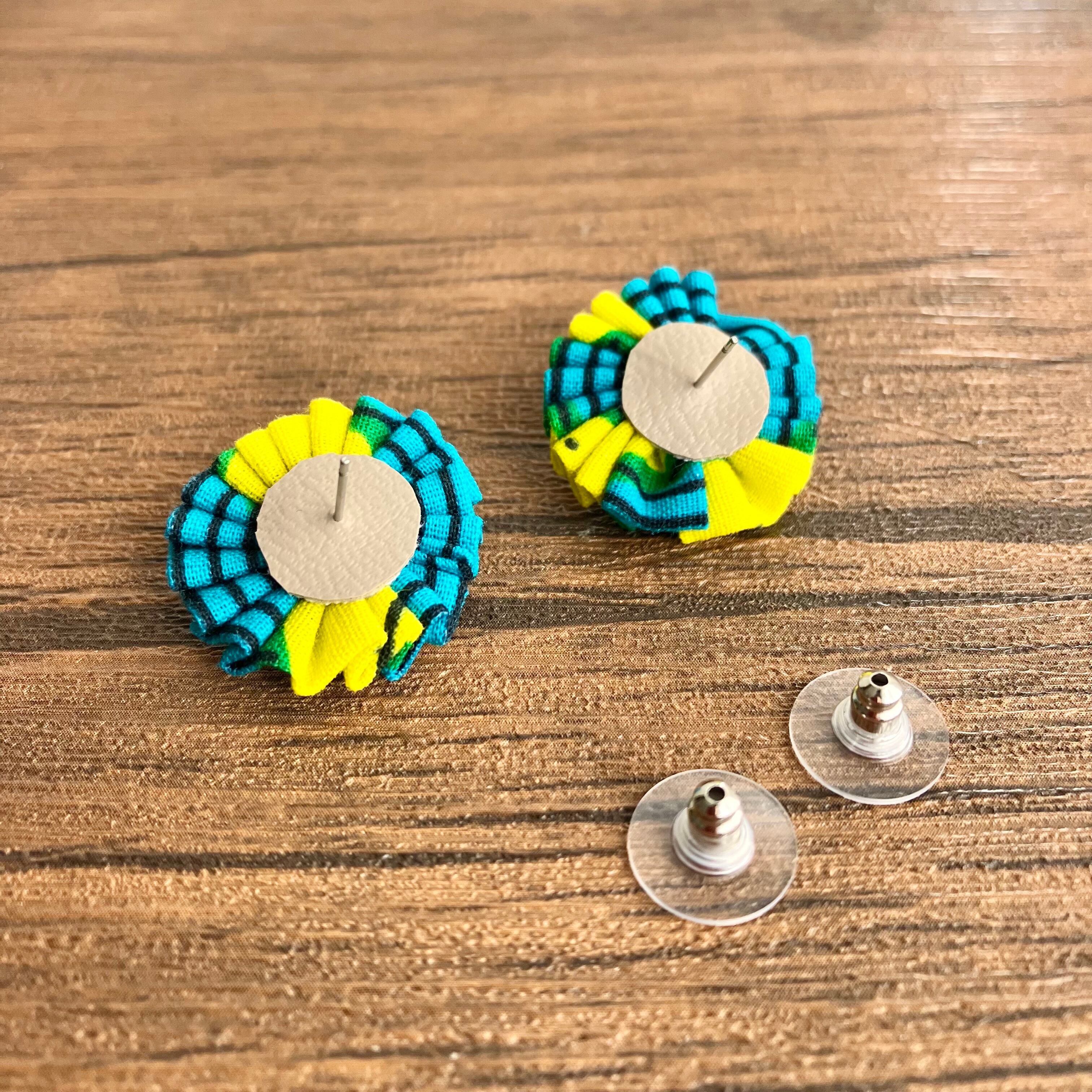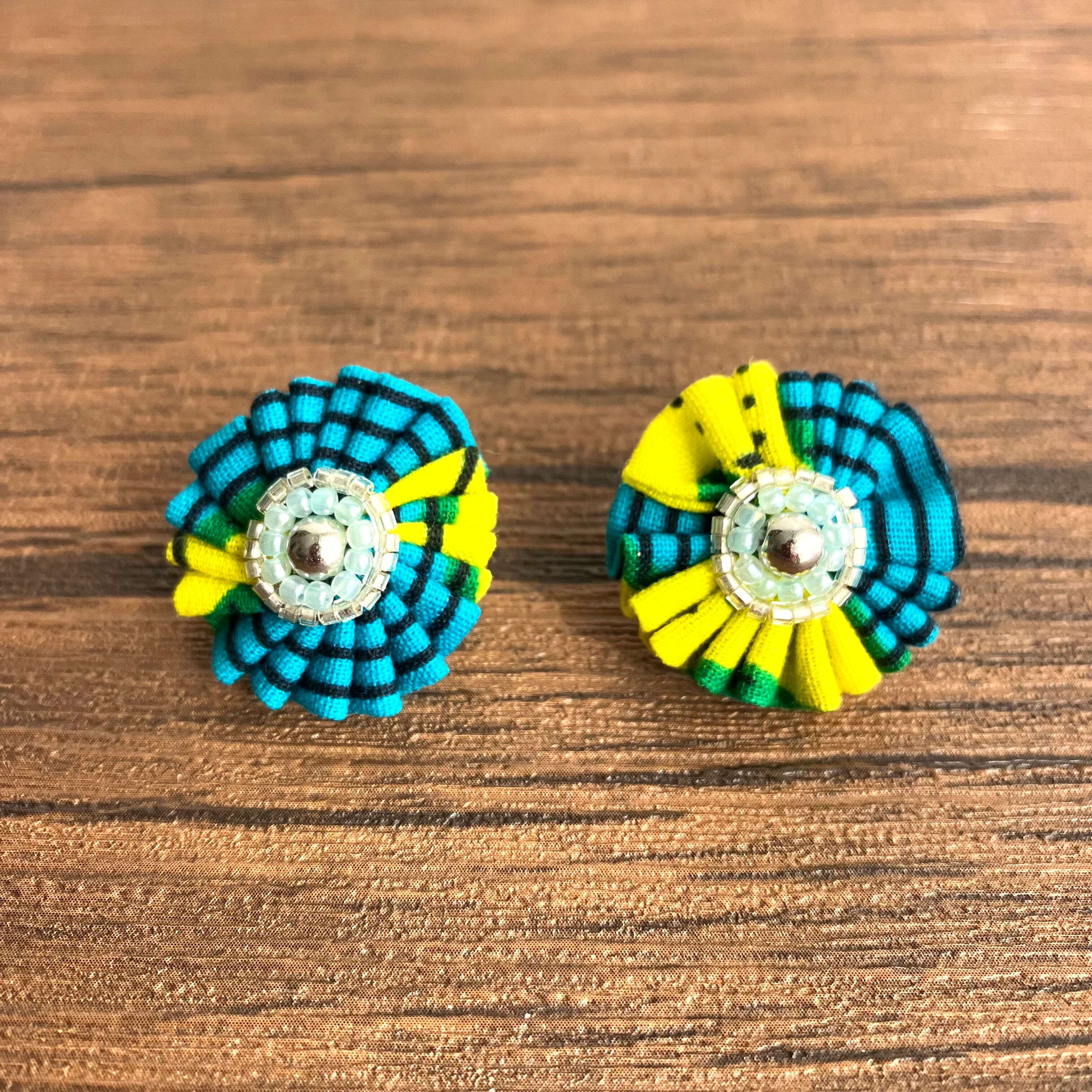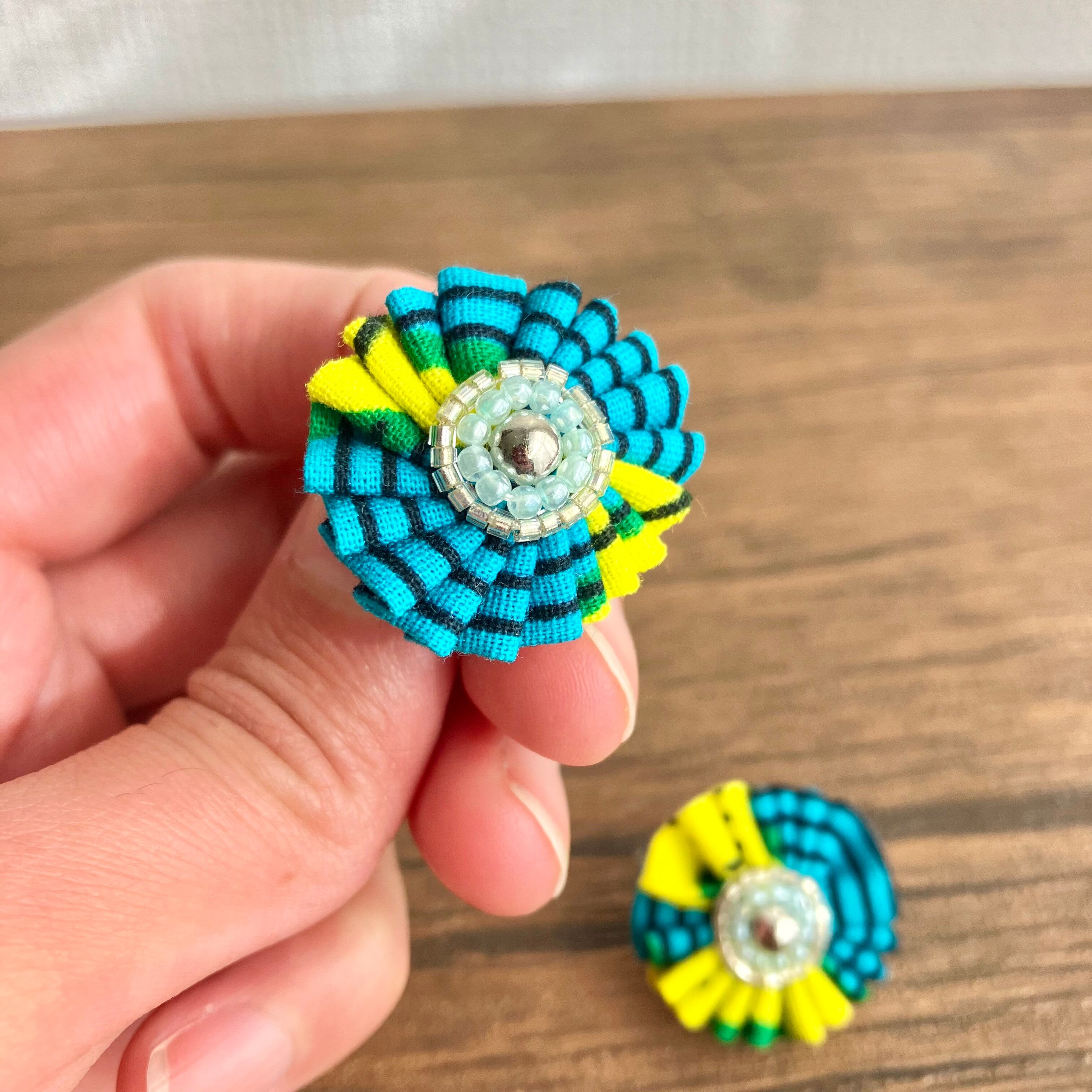 色鮮やかなアフリカ布を、くしゅくしゅっとしたお花に仕立てることで